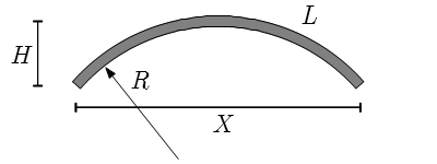 ความกว้าง X, ความสูง H, ความยาวของวัสดุ L, รัศมีความโค้ง R, และมุม A